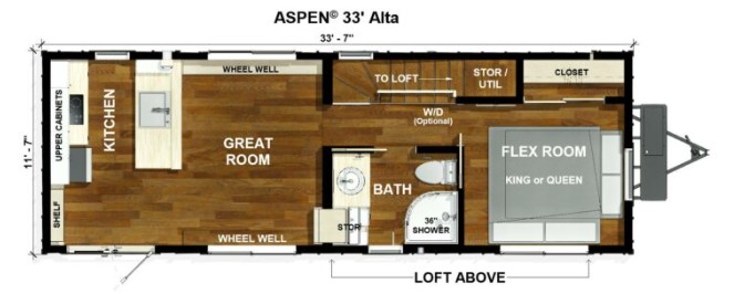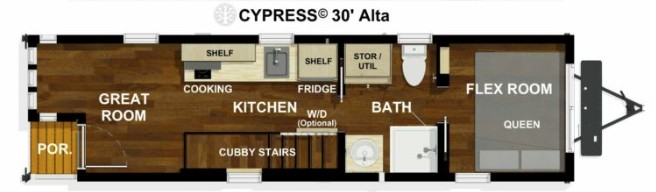 Base model shown includes standard features and mini-split, tech package, refrigerator, electric cooktop and oven.